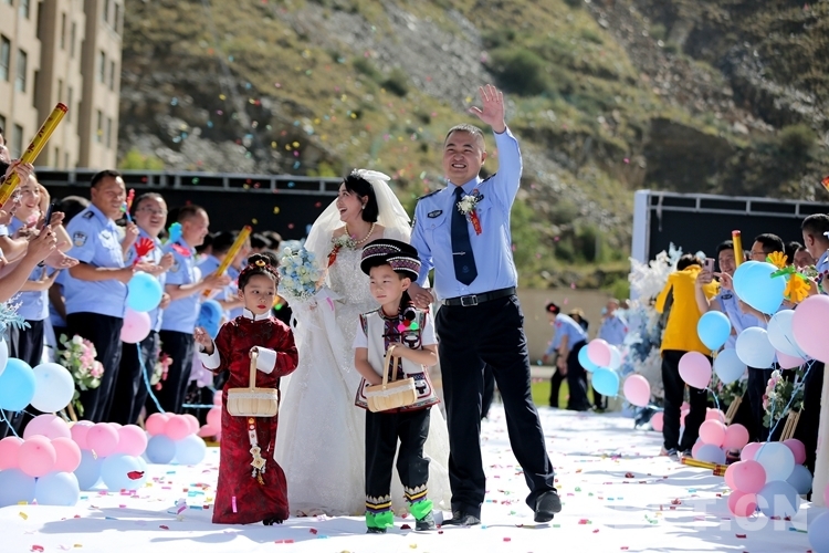 中國西藏網(wǎng)訊 8月5日,一場以“邊守·邊愛”為主題的集體婚禮在西藏出入境邊防檢查總站舉辦,12對戍邊民警夫妻在親朋好友和戰(zhàn)友們的見證下步入婚姻殿堂。