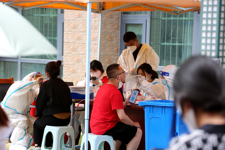 圖為位于拉薩市柳梧新區(qū)南苑小區(qū)的核酸檢測點(diǎn) 攝影:王佳豪