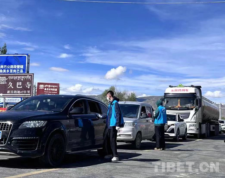圖為志愿者在西藏自治區(qū)昌都市八宿縣參與當(dāng)?shù)匾咔榉揽毓ぷ?/p>