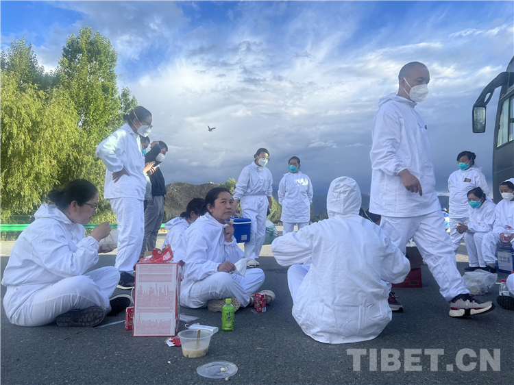旦增群培,瓊結(jié)縣加麻鄉(xiāng)衛(wèi)生院院長兼瓊結(jié)鎮(zhèn)衛(wèi)生院負責(zé)人,他說:“沒什么可說的,就是聽從組織安排,哪里需要哪里上。隊員們?yōu)榱斯?jié)約物資,減少傳播概率,一直保持著早上工作開始后中間不休息,堅持到下午才吃飯的工作模式。經(jīng)過大家的團結(jié)一致,出色地完成了本次任務(wù)。”