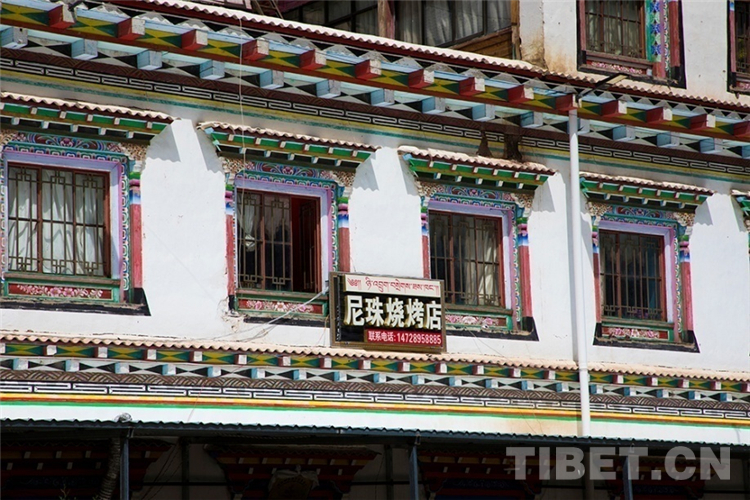 街道上行人熙熙攘攘,或體驗(yàn)風(fēng)土民情或欣賞自然壯美,村民們忙碌著生意或乘涼休憩,到處一派生機(jī)勃勃的景象?!澳銈兪菑谋本﹣?lái)我們這里的??!”村民丁增拉姆在自家燒烤店里邊忙活邊跟我們打著招呼。