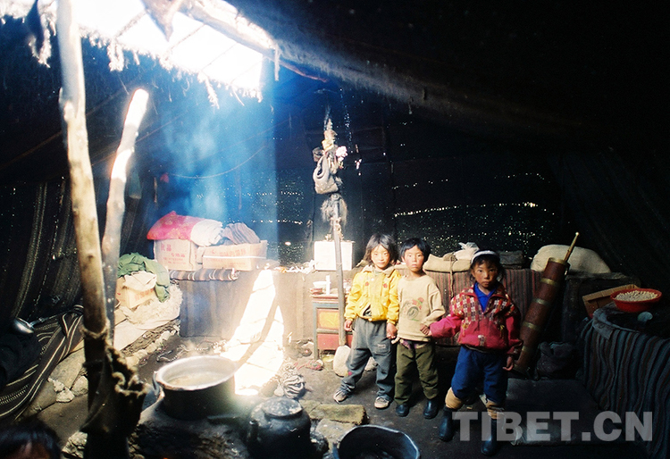 這是那曲地區(qū)(現(xiàn)那曲市)尼瑪縣一戶牧民人家的孩子在牛毛帳篷里玩耍(唐召明1996年攝)