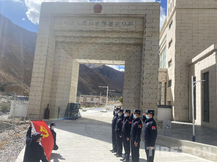 圖為移民管理警察在國門前重溫入黨誓詞 程鵬帆攝