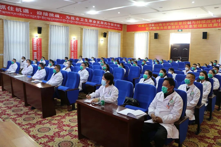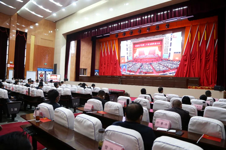 圖為山南市委禮堂內干部群眾集中收聽收看黨的二十大開幕盛況。