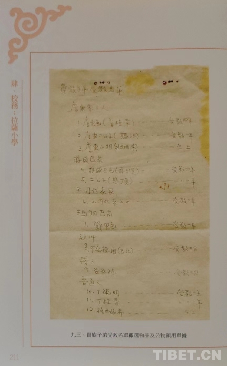 這期間,因?yàn)閷W(xué)校成績(jī)斐然,影響大增,不少貴族子弟也慕名前來(lái)就讀。拉薩小學(xué)專設(shè)一個(gè)特別班,招收貴族、富商的孩子,他們的教學(xué)是漢藏文一起上。在這個(gè)班里先后就讀的貴族子弟不少。如詹東家族的三兄妹,即詹東色、詹東·慈汪、詹東·扎西曲準(zhǔn)。詹東色有個(gè)漢語(yǔ)名字,叫詹逢春(又稱詹植棠。他是個(gè)對(duì)中華文化非常喜愛(ài)的貴族子弟,會(huì)一口流利的四川話,還跟阿旺堪布的一位漢族徒弟學(xué)會(huì)了唱京戲。他曾在蒙藏委員會(huì)委員長(zhǎng)吳忠信進(jìn)藏主持達(dá)賴?yán)镒驳涠Y時(shí),全力給予了幫助。此外,在拉薩小學(xué)上學(xué)的還有瑪朗巴”家族、“稽卜”家族的子弟。十四世達(dá)賴的二哥嘉樂(lè)頓珠也曾在這里學(xué)習(xí)過(guò)。其他還有邊覺(jué)、唐麥、夏扎、雪貴巴等的子女。