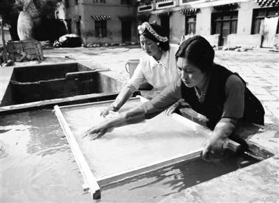 圖為制做藏紙 圖片來源:西藏商報