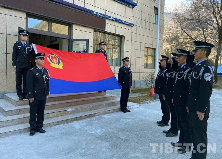 圖為隆子扎日邊境派出所全體民警重溫入警誓詞 陳誠(chéng) 攝