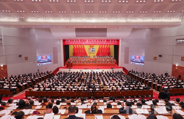 圖為西藏自治區(qū)十二屆人大一次會(huì)議現(xiàn)場(chǎng) 攝影:賈華加