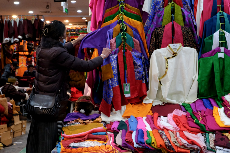圖為藏歷新年前,正在選購藏裝的市民 攝影:蘇洋