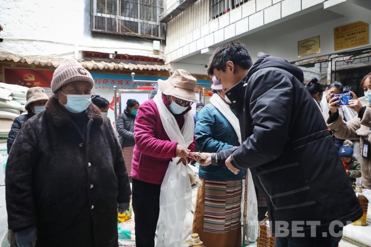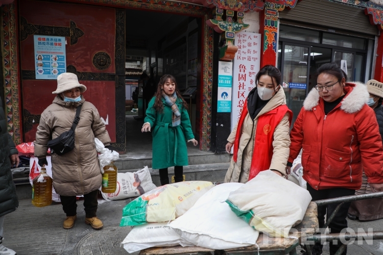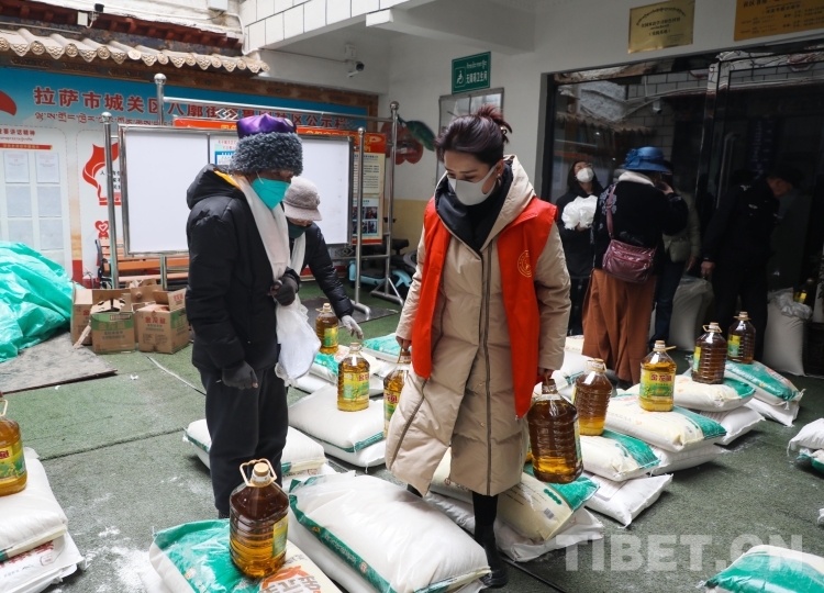 中國西藏網(wǎng)訊 近日,在西藏自治區(qū)拉薩市城關(guān)區(qū)八廓街道魯固社區(qū)居委會的院子里,不時傳來陣陣歡聲笑語,在院子的正中間,一袋袋大米、面粉,一桶桶食用油碼放整齊。