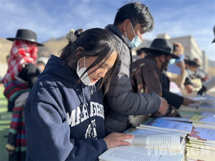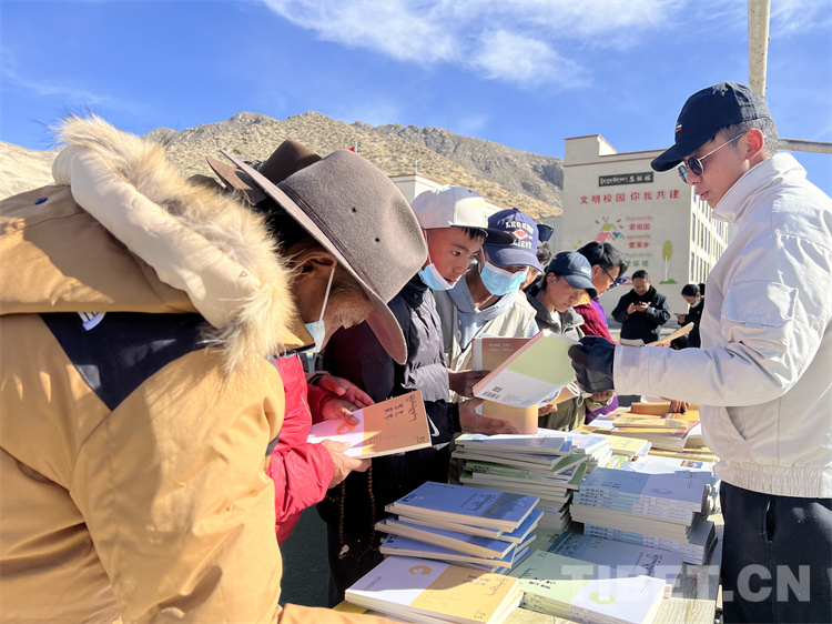 在送“書(shū)籍” 現(xiàn)場(chǎng),《西藏文學(xué)》《西藏文藝》《邦錦梅朵》三個(gè)編輯部工作人員為現(xiàn)場(chǎng)群眾和當(dāng)?shù)?span style="text-align: center; background-color: rgb(253,242,234)">干部贈(zèng)送書(shū)籍,當(dāng)?shù)厝罕姾蛯W(xué)生們紛紛前來(lái)翻看尋找自己喜歡的書(shū)籍,大家人手幾本書(shū)?!拔移綍r(shí)喜歡閱讀藏文文學(xué)作品,這次要了兩本文學(xué)相關(guān)書(shū)籍拿回家閱讀”17歲的益西巴珍說(shuō)。據(jù)了解,此次活動(dòng)西藏文聯(lián)向熱愛(ài)閱讀的群眾和學(xué)生共贈(zèng)送1500本(冊(cè))文藝書(shū)籍和期刊。