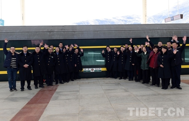 這是京藏車隊(duì)二組乘務(wù)員在拉薩站發(fā)車前與自己朝夕相伴的列車拍照留念(唐召明2016年2月3日攝)