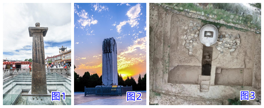 圖1為拉薩大昭寺前的唐蕃會(huì)盟碑 圖片來(lái)源:中國(guó)西藏網(wǎng);圖2為唐乾陵的無(wú)字碑 圖片來(lái)源:中國(guó)乾陵網(wǎng)站;圖3為西藏曲水溫江多遺址龜趺及房址 圖片來(lái)源:國(guó)家文物局