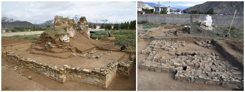 圖為西藏曲水溫江多遺址西南塔塔基(左)和東北塔塔基(右) 圖片來(lái)源:國(guó)家文物局供圖拼合