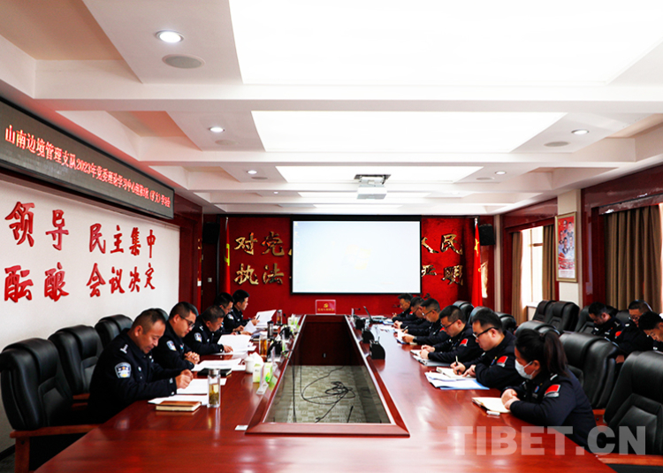 圖為山南邊境管理支隊(duì)召開(kāi)黨委理論學(xué)習(xí)中心組(擴(kuò)大)學(xué)習(xí)會(huì),深入學(xué)習(xí)兩會(huì)精神 鄭琦山 攝