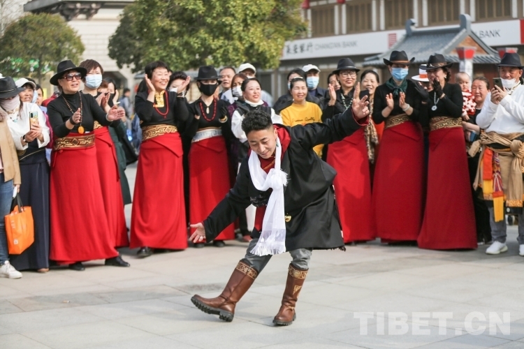 中國(guó)西藏網(wǎng)訊 3月21日,由新的社會(huì)階層人士服務(wù)團(tuán)三分團(tuán)主辦、北京藏地神韻非物質(zhì)文化傳播發(fā)展公司承辦的傳統(tǒng)藏舞公益推廣活動(dòng)在西安舉辦。多位藏舞傳承人與藏舞愛好者齊聚西安大唐西市進(jìn)行公益推廣交流。鍋莊、伊舞,《歡迎你們到來》《舞動(dòng)青春年華》《吉祥的哈達(dá)》……一曲接著一曲,舞出了藏族舞蹈的無限魅力?。ㄖ袊?guó)西藏網(wǎng) 記者/呂靜 姚浩然)