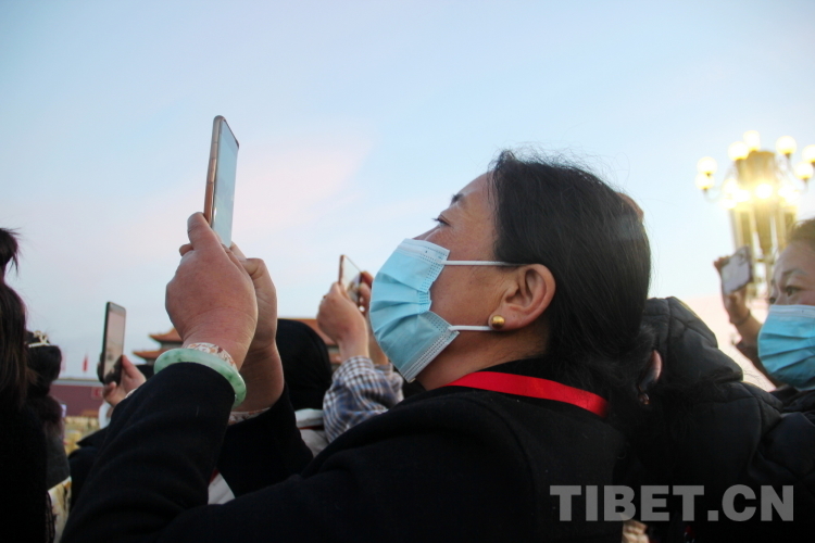 清晨6時(shí)許,軍樂團(tuán)在天安門廣場就位?!罢阶?!”隨著一聲響亮的口令,國旗護(hù)衛(wèi)隊(duì)邁著鏗鏘的正步,拱衛(wèi)國旗走過天安門城樓、金水橋。“向國旗敬禮!”6時(shí)9分,隨著響亮的口令,軍樂團(tuán)奏響了國歌《義勇軍進(jìn)行曲》,升旗手高高揚(yáng)起國旗,鮮艷的五星紅旗迎著朝陽冉冉升起。“2023年西藏基層?jì)D聯(lián)干部赴京學(xué)習(xí)參觀團(tuán)”成員們紛紛用手機(jī)記錄下這難忘的時(shí)刻。