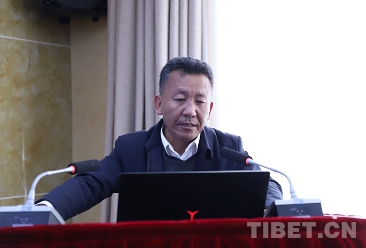 圖為項(xiàng)目負(fù)責(zé)人巴桑旺堆匯報(bào)項(xiàng)目執(zhí)行與管理方案