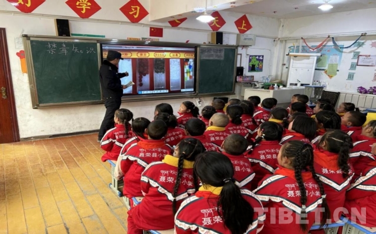 圖為那曲市當木江鄉(xiāng)組織學生講解禁毒常識