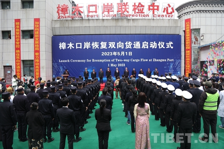 圖為樟木口岸恢復(fù)雙向貨通儀式現(xiàn)場(chǎng) 攝影:鄒興國