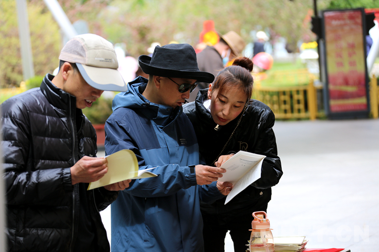 圖為在現(xiàn)場參加活動的群眾、游客翻閱宣傳手冊并聽取宣傳人員的講解 攝影:王佳豪