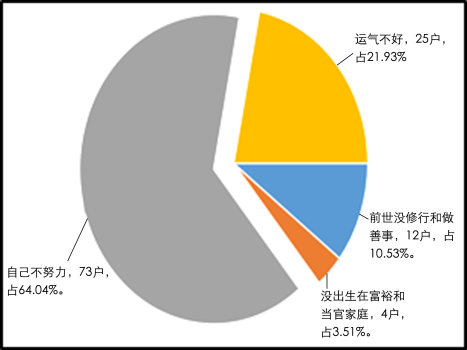 該書通過2017—2021年的實地調(diào)研數(shù)據(jù)分析指出,361戶農(nóng)牧民的宗教消費支出僅占其總收入的2.10%,總體上構(gòu)成經(jīng)濟負擔的現(xiàn)象已不普遍。宗教消費對人力資本的抑制作用已大大降低,對人口數(shù)量的影響已基本不存在,人們生病不再求神拜佛,而是選擇就醫(yī)。宗教消費和投入“不再是農(nóng)牧民提高其在村里地位、威信和受尊敬程度的主要途徑,也不再是面臨困難時獲取他人更多幫助的主要手段;僧尼也不再是農(nóng)牧民面臨重大決策時的主要咨詢對象。隨著農(nóng)村基層組織的加強,脫貧攻堅的成功實現(xiàn),村干部正成為農(nóng)牧民遇到困難時的主要求助對象,遇到重大決策時的咨詢對象,成了村里最有威信和地位的群體”。訪談問卷的114戶農(nóng)牧民中有73戶(64.04%)認為貧困的主要根源在于自己不努力。當前,西藏農(nóng)牧民的宗教消費如同普通商品一樣,會隨著家庭總收入的增加而適當增加,但會低于總收入的增長速度;家中有人去世時,宗教消費支出較多;家中黨員數(shù)量越多,家中宗教消費支出占家庭總收入的比重越小。西藏農(nóng)牧民宗教消費的功能也發(fā)生了質(zhì)的改變,開始發(fā)揮調(diào)節(jié)身心、緩解壓力的積極功能。