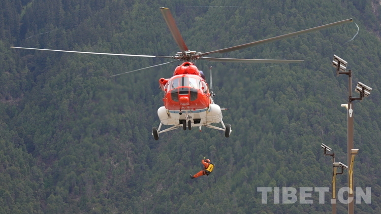 圖為直升機在“應(yīng)急使命·西藏2023”抗震救災(zāi)實戰(zhàn)化演習(xí)中從空中將林芝市森林消防支隊救援力量投送到位。