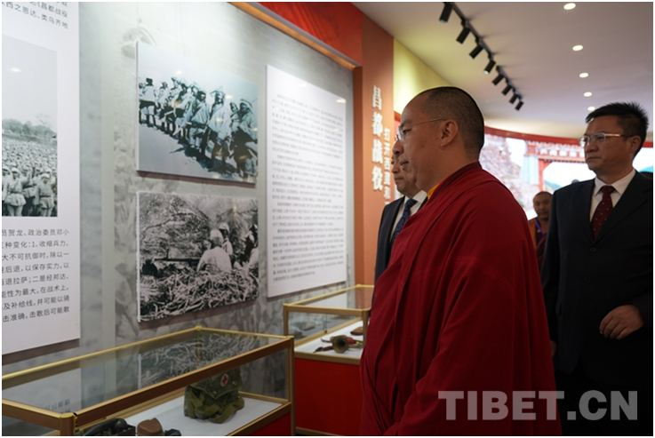 一張張照片、一件件實物訴說著那段崢嶸歲月,崗?fù)械臍v史,是軍人與百姓、也是各民族的團(tuán)結(jié)史,更是雪域高原換新顏的奮斗史,是紅色種子生根發(fā)芽,蔚然成林的傳承史。參觀中班禪認(rèn)真聽取介紹,深切緬懷革命先烈,感受崗?fù)羞@片熱土獨特的紅色文化。