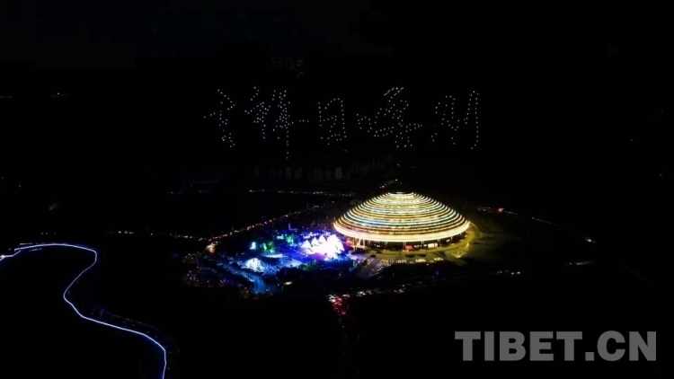 21時30分許,由300架無人機組成的暖場表演在園區(qū)上空精彩呈現(xiàn),組成”珠峰故里、吉祥日喀則,歡迎您!”等陣型。匠心獨運的創(chuàng)意設計,流光溢彩的聲光電效果,以恢宏氣勢和華麗造型,展示日喀則的開放包容。