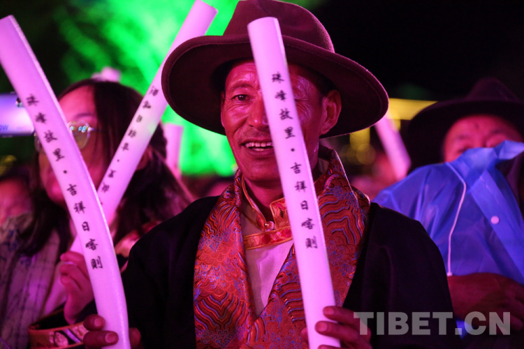 圖為現(xiàn)場觀眾揮舞手中帶有第十八屆珠峰文化藝術節(jié)字樣的熒光棒 攝影:王佳豪