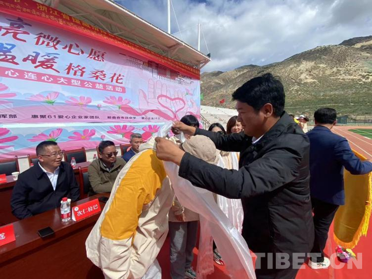 浙江省援藏指揮部指揮長董旭斌說,這次公益活動特別有意義,惠聚61企業(yè)家團隊萬里送愛心,充分體現了對孩子們真摯的愛,體現了浙那一家親,體現了鑄牢中華民族共同體意識。