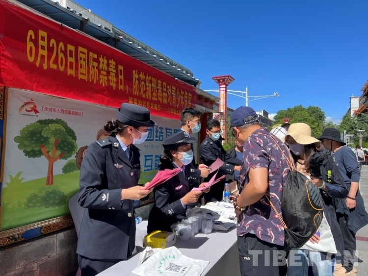 中國西藏網訊 6月26日,在第36個國際禁毒日到來之際,西藏自治區(qū)禁毒辦聯合拉薩市禁毒辦在拉薩市宇拓路、迎賓館開展“綠色無毒西藏、你我共同守護”主題的宣傳活動。