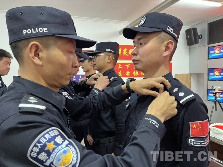 圖為阿里邊境管理支隊舉行為黨員民警佩戴黨員徽章儀式