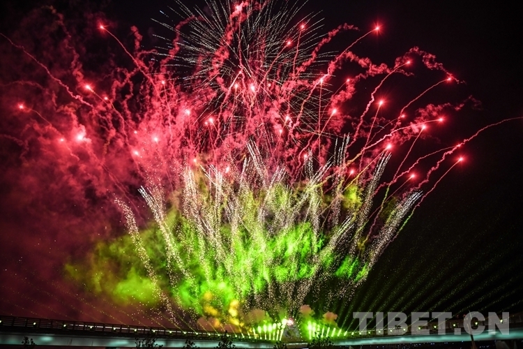 圖為點(diǎn)亮儀式的主點(diǎn)位拉薩中華文化公園煙花秀 由潘多供圖