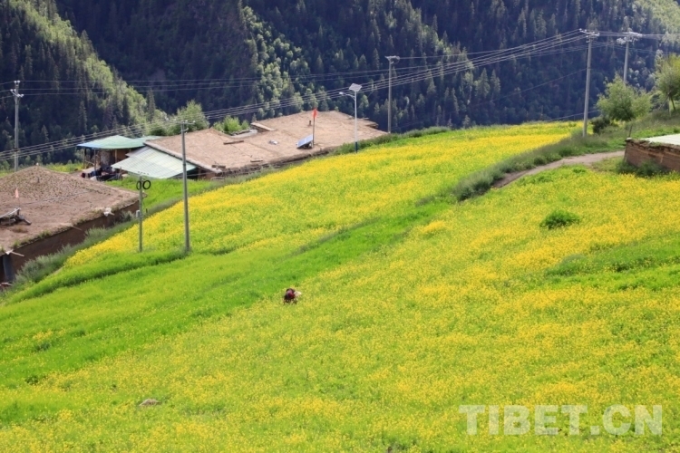 原來,這里有諸多野生動物和人類和諧共處。天空不時飛翔過雄鷹,還有時而飛過的烏鴉、鴿子,狗兒在村子里自由來去,山坡上盡是悠閑吃草的牦?!牣?dāng)?shù)厝苏f,這里還經(jīng)常出現(xiàn)成群的獼猴、梅花鹿,在山澗飲水的野雞,甚至偶爾還有黑熊“光臨”村子……