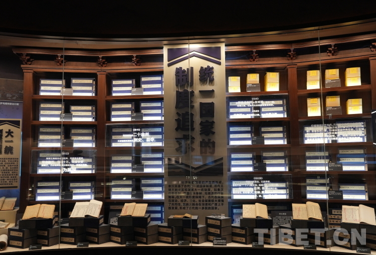 圖為鑄牢中華民族共同體意識文物古籍展第一單元“大一統(tǒng)”展廳 攝影:張萌萌