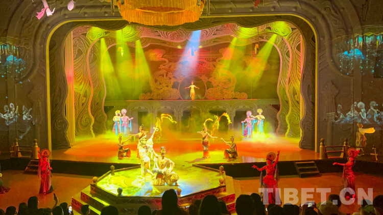 圖為全球首部洞窟式沉浸體驗(yàn)劇《樂(lè)動(dòng)敦煌》演出現(xiàn)場(chǎng),向世界傳播敦煌文化之美 攝影:趙振宇