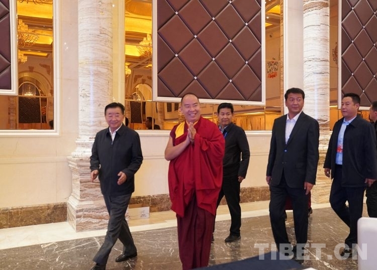 圖為班禪和出席活動(dòng)的領(lǐng)導(dǎo)步入會(huì)場 攝影:王淑