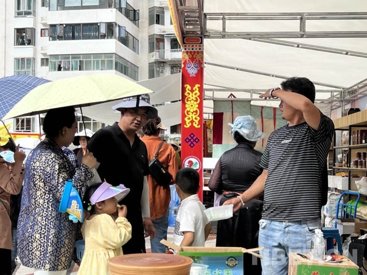 牦牛肉、酥油、酸奶、奶渣等畜牧業(yè)產(chǎn)品;青稞、蕎麥、糌粑、核桃油等農(nóng)產(chǎn)品;唐卡、服飾、藏醫(yī)藥、木碗等非遺產(chǎn)品等等,各種各樣的特色產(chǎn)品讓人目不暇接,游客們流連于各個展銷點選購心儀的產(chǎn)品,現(xiàn)場已然一幅熱鬧的景象。