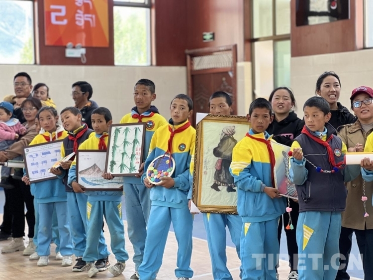 在愛心拍賣會上,藏族小朋友制作的特色手工藝品,不斷吸引著所有志愿者的目光。旁多鄉(xiāng)中心小學(xué)拿著手工品、書法作品、繪畫作品等依次上臺展示,拍賣師介紹作品的聲音剛落下,在場的志愿者就紛紛舉牌應(yīng)拍,叫喊加價的聲音此起彼伏,大家紛紛慷慨解囊,舉牌應(yīng)拍。