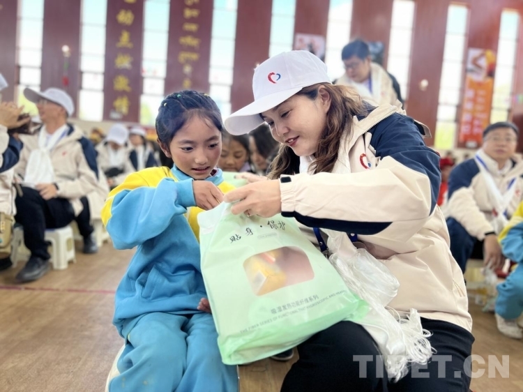 啟動儀式上,王一強和郭治民分別向旁多鄉(xiāng)中心小學(xué)和貢嘎縣崗堆鄉(xiāng)中心小學(xué)捐贈了價值10萬元的藥品和愛心物資。啟動儀式結(jié)束后,紅十團230位志愿者兵分兩路前往這兩所學(xué)校,進行定點幫扶。