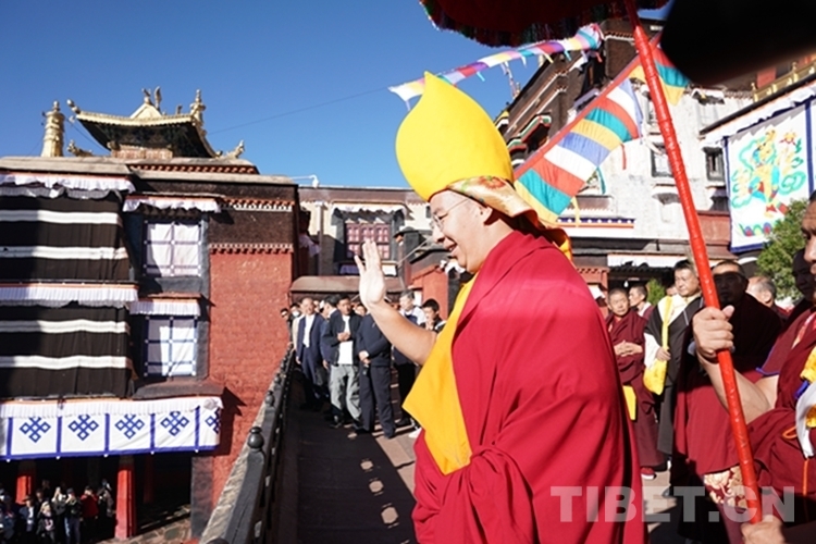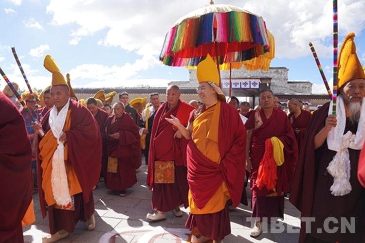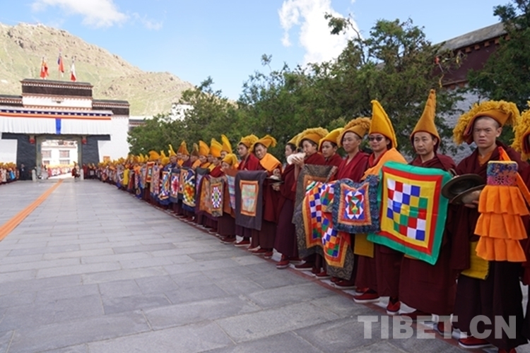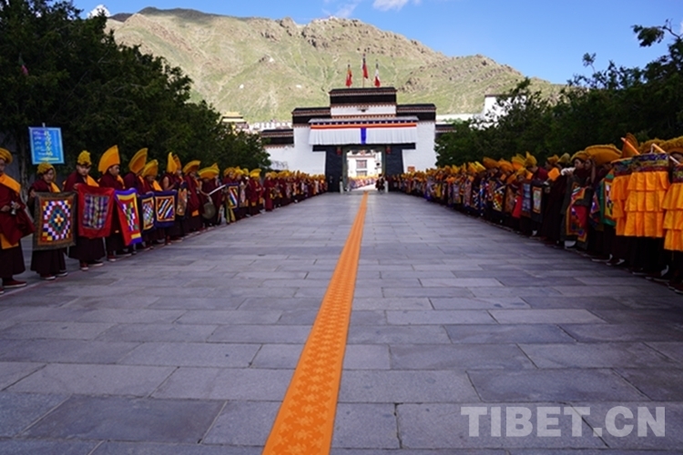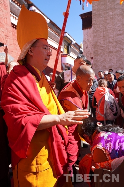 當天,扎什倫布寺裝扮一新,寶頂流彩,金碧輝煌,寺院大門前信眾摩肩接踵翹首以盼,通往寺廟大殿的道路兩側僧眾比肩而立列隊歡迎,整個寺院沉浸在祥和、莊重、熱烈的氣氛中。