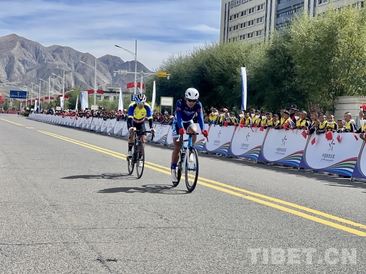 終點附近的居民紛紛趕到終點等候選手們的到來。“快看!運動員們沖過來啦!”隨著阿媽達瓦普尺的尖叫聲響起,大家紛紛高聲吶喊,為選手們加油助威?!奥犝f他們是從江孜縣騎行來到這兒的,一定是身體特別好,看他們氣喘吁吁的樣子,真是太辛苦了,希望他們安全完賽,取得理想的成績?!卑屵_瓦普尺神情緊張而又激動地目送著一個又一個運動員,一會兒為他們鼓掌,一會兒向他們豎起大拇指點贊。