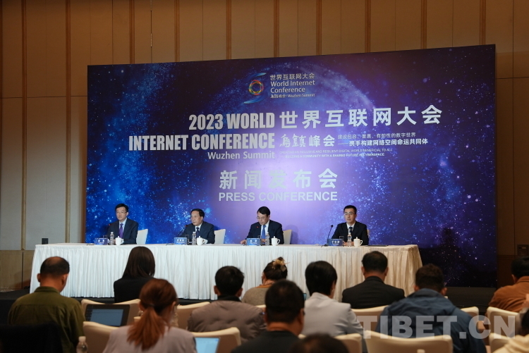 圖為2023年世界互聯(lián)網(wǎng)大會(huì)烏鎮(zhèn)峰會(huì)新聞發(fā)布會(huì)現(xiàn)場(chǎng) 攝影:張萌萌