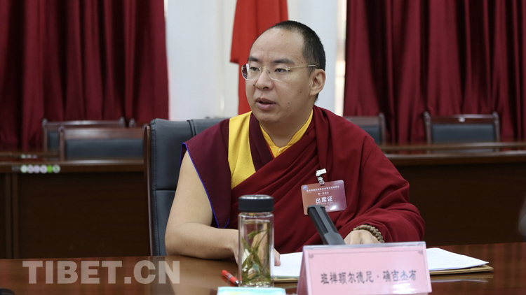 圖為援助西藏發(fā)展基金會(huì)第五屆理事會(huì)理事長班禪額爾德尼·確吉杰布講話 攝影:旺啦
