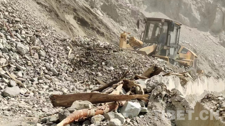 圖為墨脫縣交通運輸局保通隊正在搶通因山體滑坡而阻斷的道路 資料圖片由西繞尼瑪提供
