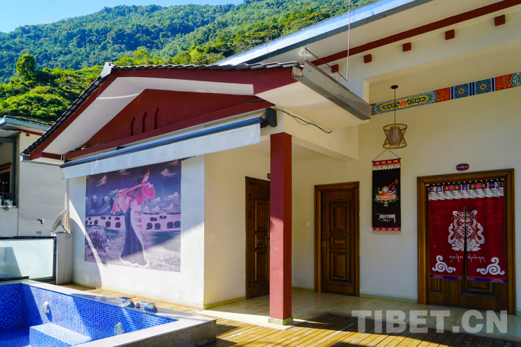 “現(xiàn)在看到的這些‘門(mén)巴小院’就是我們村里的民宿,這里不僅有現(xiàn)代化的酒店設(shè)施,更有獨(dú)特的天然溫泉,加上我們巴登村美麗的自然風(fēng)光和淳樸的門(mén)巴村民,能夠讓每一位來(lái)到我們這里的游客留下獨(dú)特的回憶?!闭谙蛭覀兘榻B門(mén)巴小院的是三峽集團(tuán)駐巴登村第一書(shū)記兼工作隊(duì)長(zhǎng)葉劍。葉隊(duì)長(zhǎng)告訴我們,巴登村發(fā)展民宿產(chǎn)業(yè)緣起于村民搬遷后村子里有空置的房屋,上一任駐村工作隊(duì)長(zhǎng)周雨樹(shù)提出了打造“門(mén)巴風(fēng)情旅游村莊”的設(shè)想。