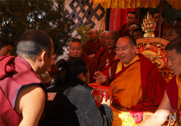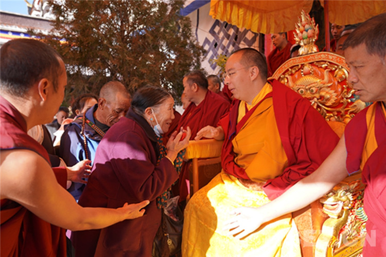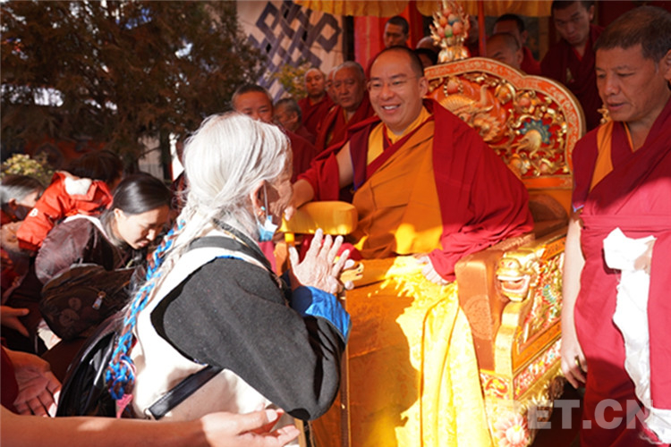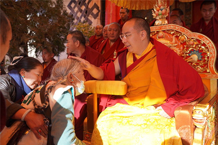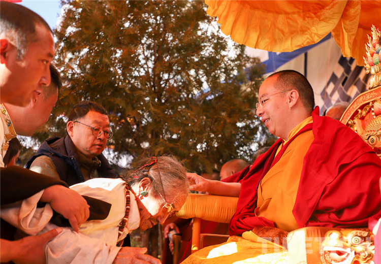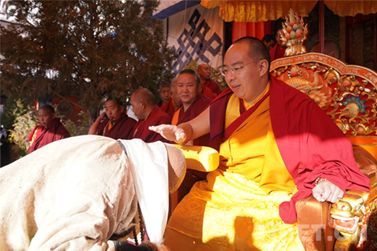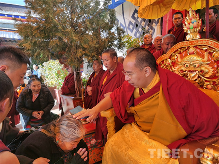 中國西藏網訊 11月13日至14日,全國政協(xié)常委、中國佛教協(xié)會副會長、中國佛協(xié)西藏分會會長班禪額爾德尼?確吉杰布在西藏日喀則市扎什倫布寺多加大院為信教群眾摸頂賜福,這是近年來規(guī)模最大的一次班禪摸頂賜福活動。圖為班禪摸頂賜福 攝影:王淑(中國西藏網 記者/王淑 賈華加)