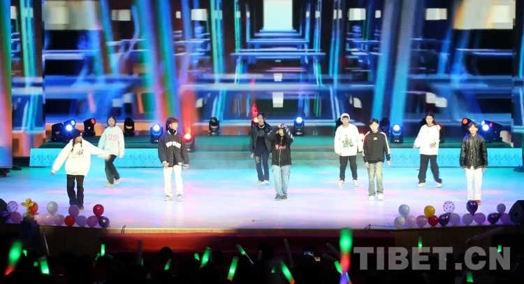圖為拉薩師范高等??茖W(xué)校學(xué)生代表表演開場(chǎng)舞蹈《街舞freestyle》 攝影:王佳豪