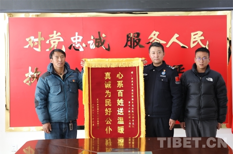 中國西藏網(wǎng)訊 “太謝謝你們的民警了,第十二批駐村工作隊給我們解決了不少大問題”。12月25日,西藏自治區(qū)日喀則市定日縣曲當(dāng)鄉(xiāng)差村支部書記扎西在西藏邊檢總站執(zhí)法調(diào)查支隊會議室激動地說。扎西代表差村村兩委班子和村民群眾的意愿,帶著印有“心系百姓送溫暖、真誠為民好公仆”的錦旗專程來到支隊表達(dá)感謝,并向支隊領(lǐng)導(dǎo)提交繼續(xù)留任民警貢秋江措駐村的申請書。